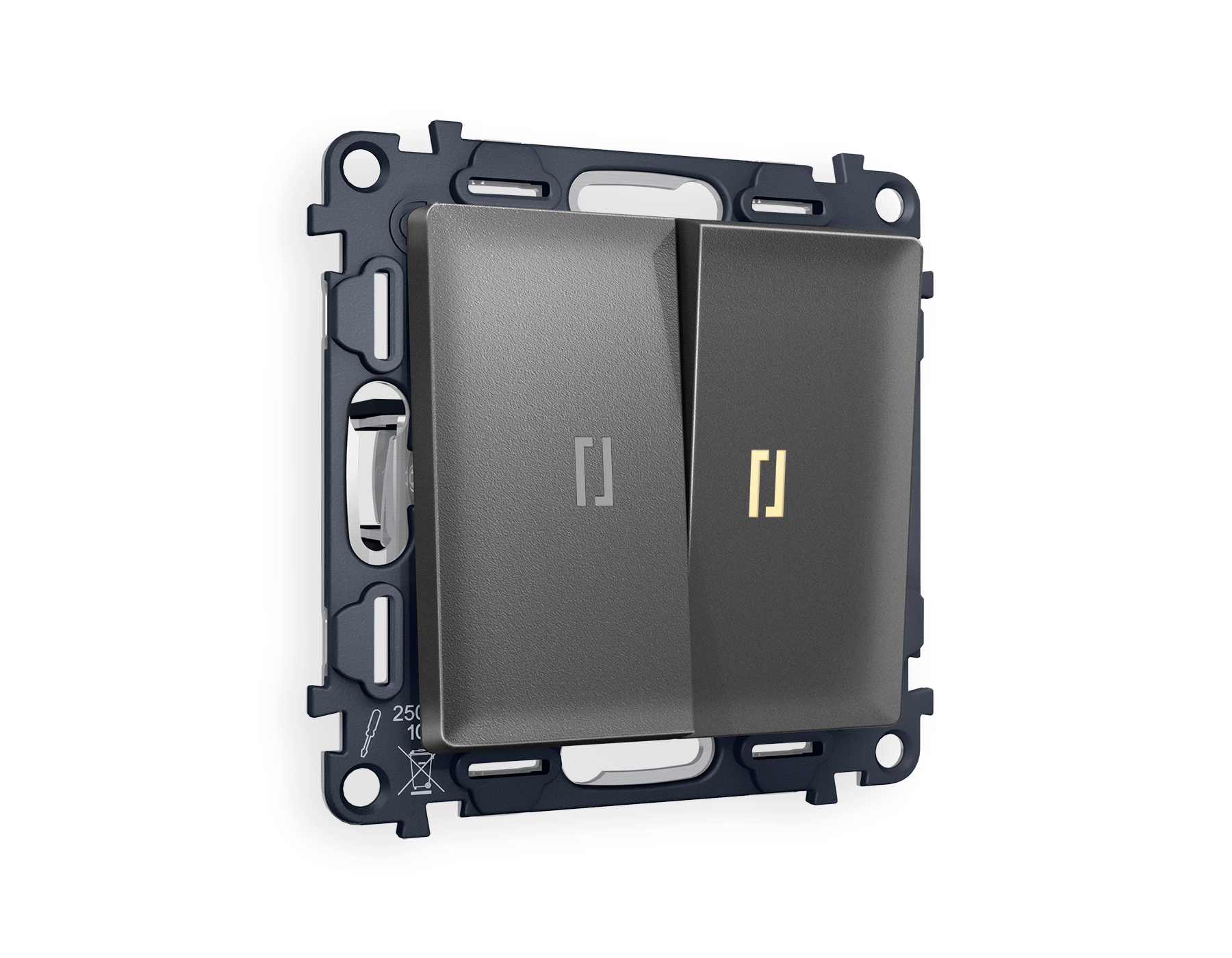| Альтернативное название | Комплект механизма 2-клавишного проходного выключателя с подсветкой 3200K ALFA MA654030 Антрацит серый QUANT |